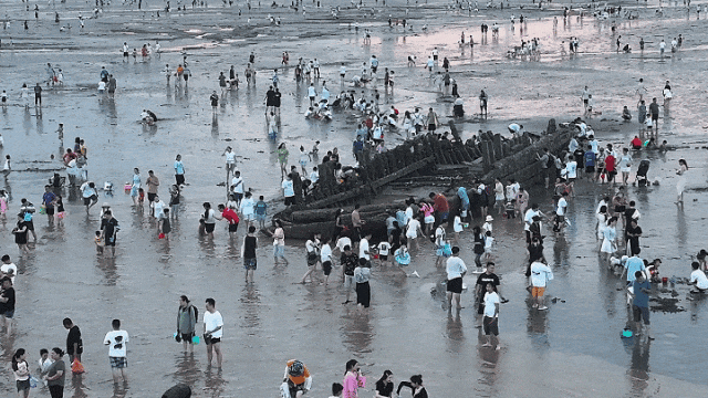 这个夏天,随着海湾旅游区渔人码头的重新开放,一波波“赶海大军”接踵而至。而就在退潮后的滩涂上,有这么一艘快散架的渔船却成了不少游客拍照打卡的背景。有人不禁疑惑,这艘渔船是从哪里来的?为何一直躺在这里,它有着怎样的故事?今天,小编就来为你揭开这其中的故事!