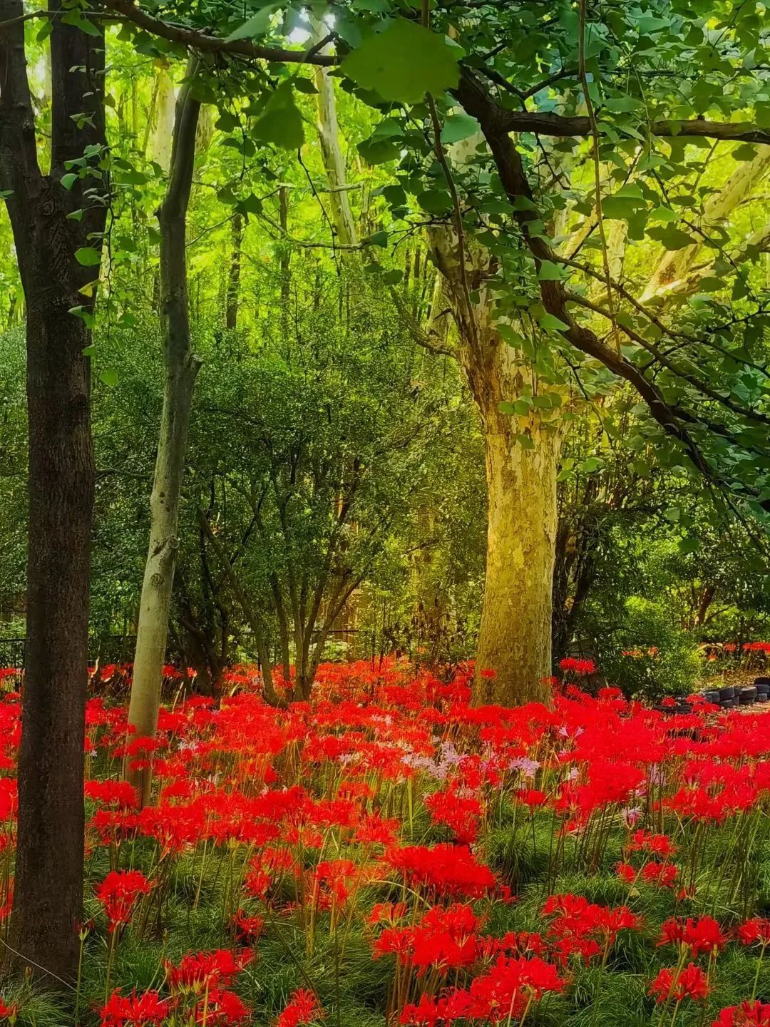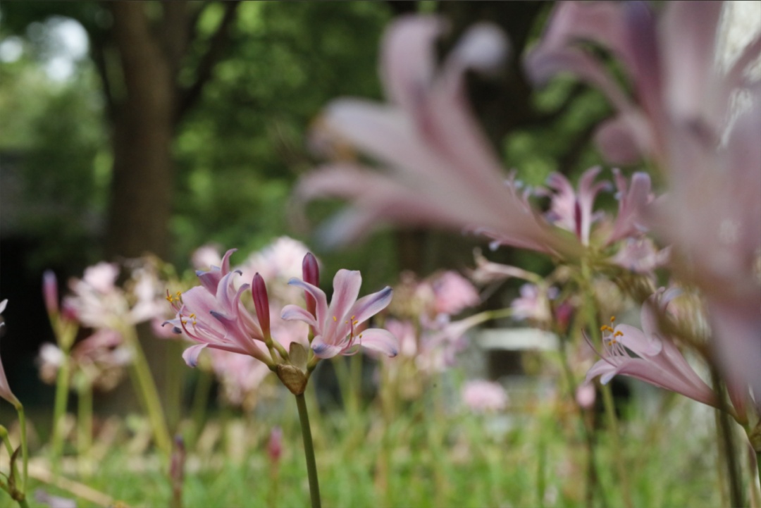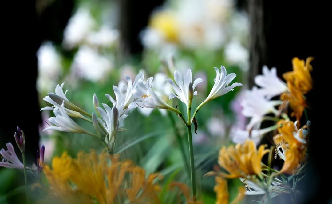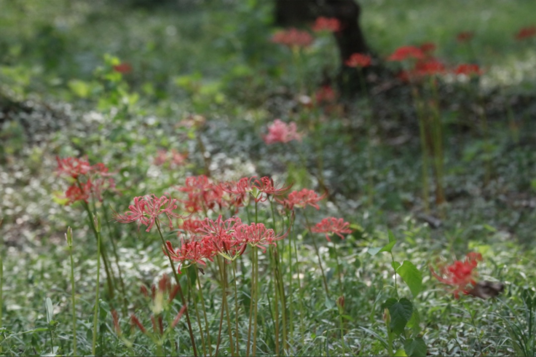 当暑天的炎热逐渐退去,旷达的初秋便华丽登场。在共青森林公园,石蒜属植物如烟花般盛放,轻盈婀娜地翩翩起舞,散发着曼妙的优雅姿态。