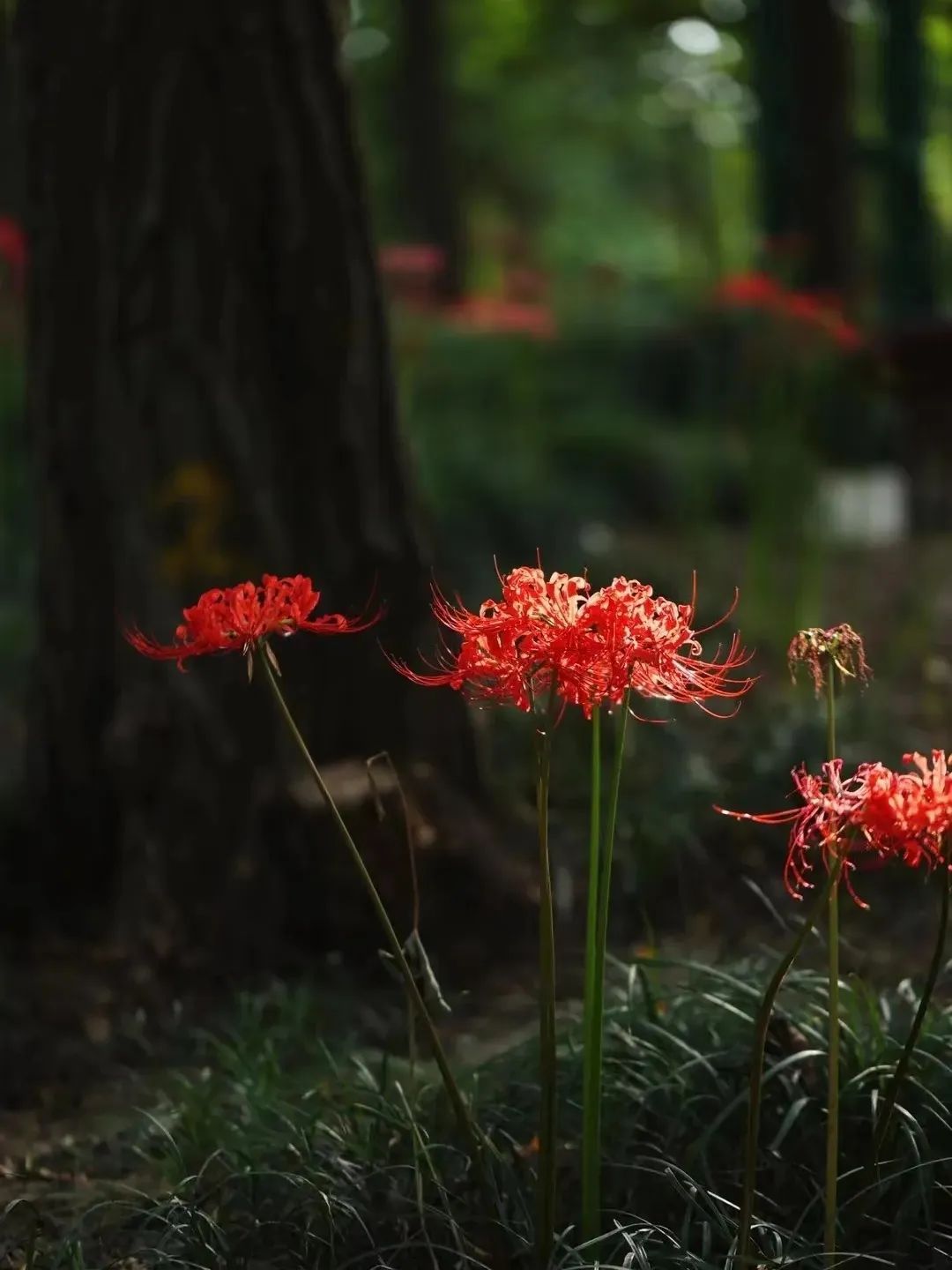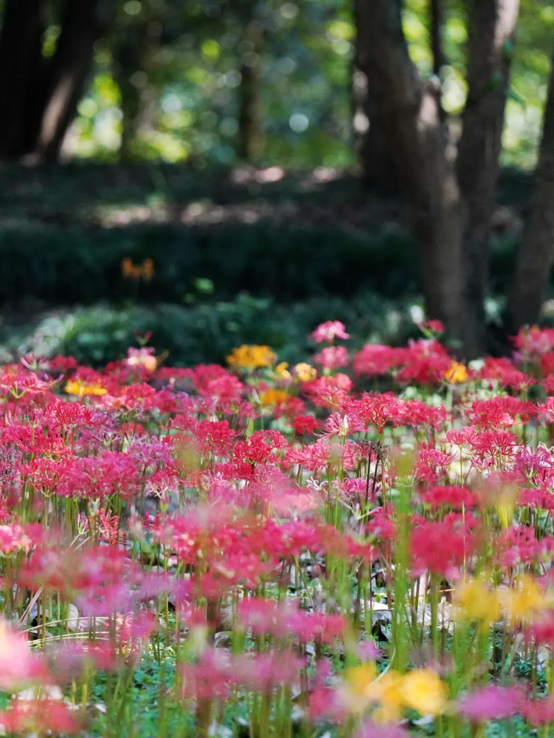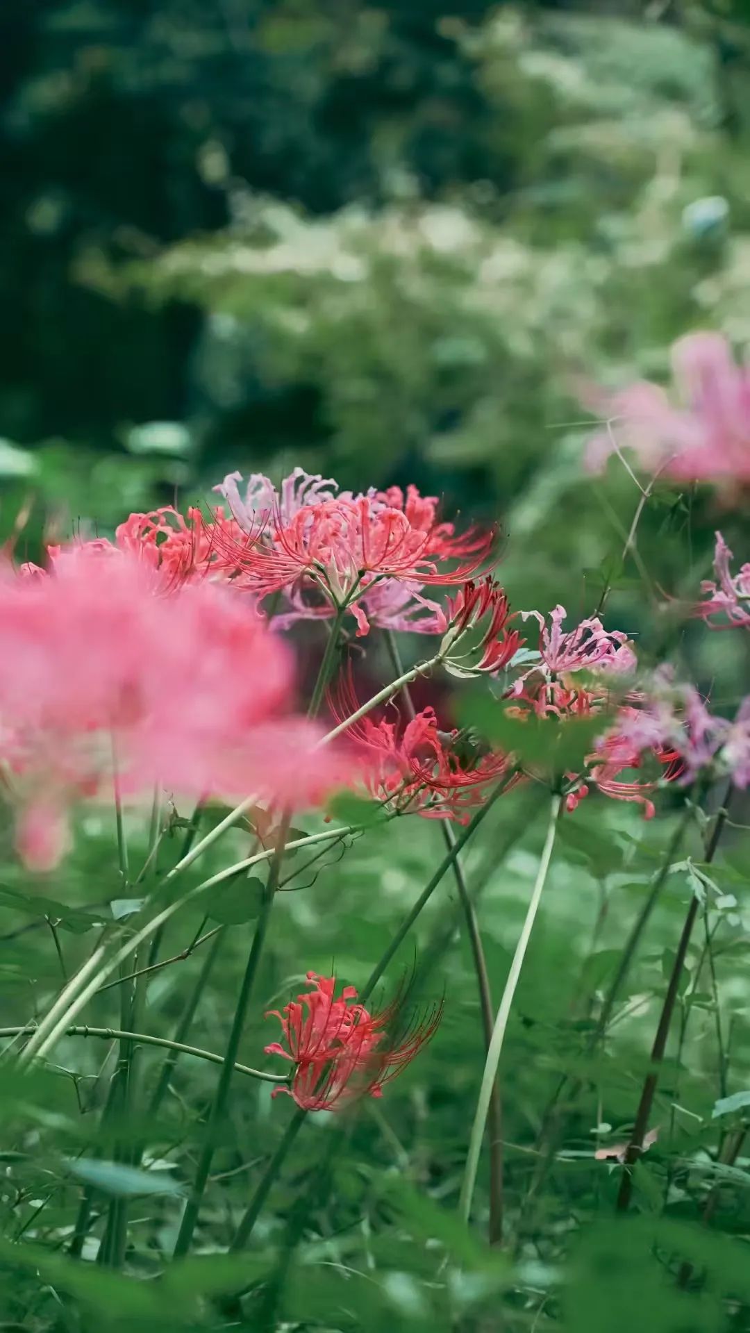 当暑天的炎热逐渐退去,旷达的初秋便华丽登场。在共青森林公园,石蒜属植物如烟花般盛放,轻盈婀娜地翩翩起舞,散发着曼妙的优雅姿态。