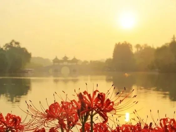 瘦西湖内有20余个石蒜花属植物品种,它们艳丽而火热的外表,以自己的“十里红妆”装点着初秋的瘦西湖,为清秋的水墨丹青画卷增添了一抹热烈的颜色。来瘦西湖与“彼岸花”邂逅一场吧~