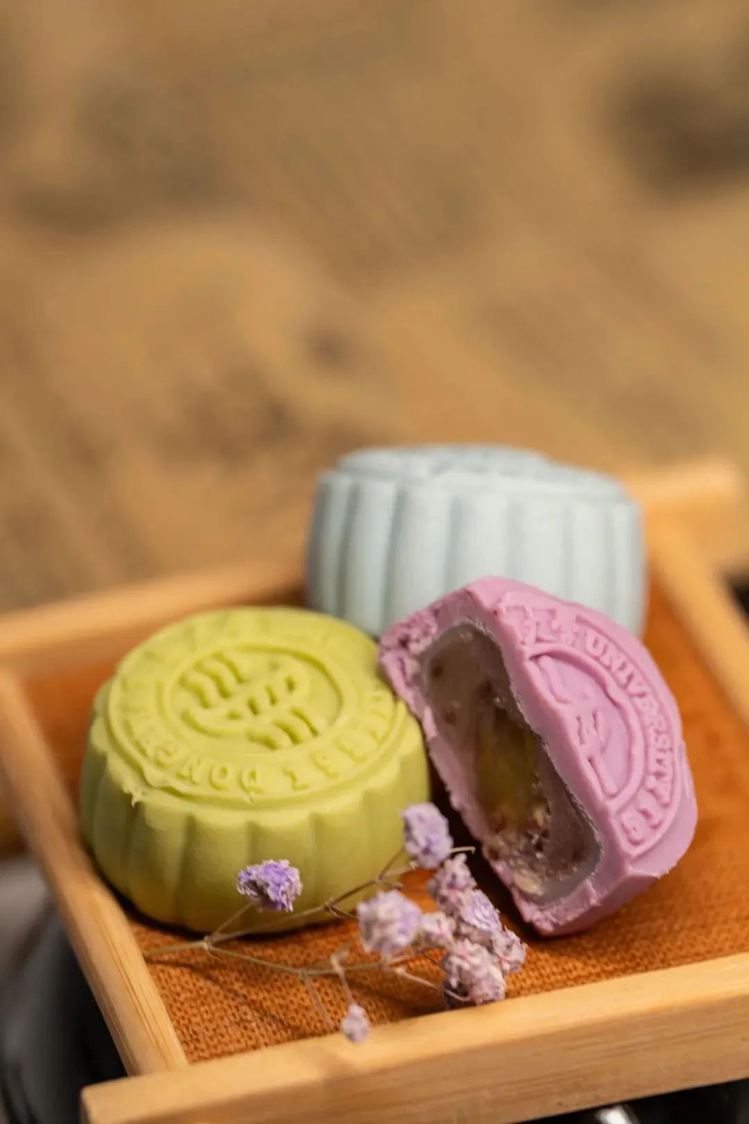 东华大学今年的月饼继续延续之前的广式、雪媚娘流心、和桃山三种款式。
