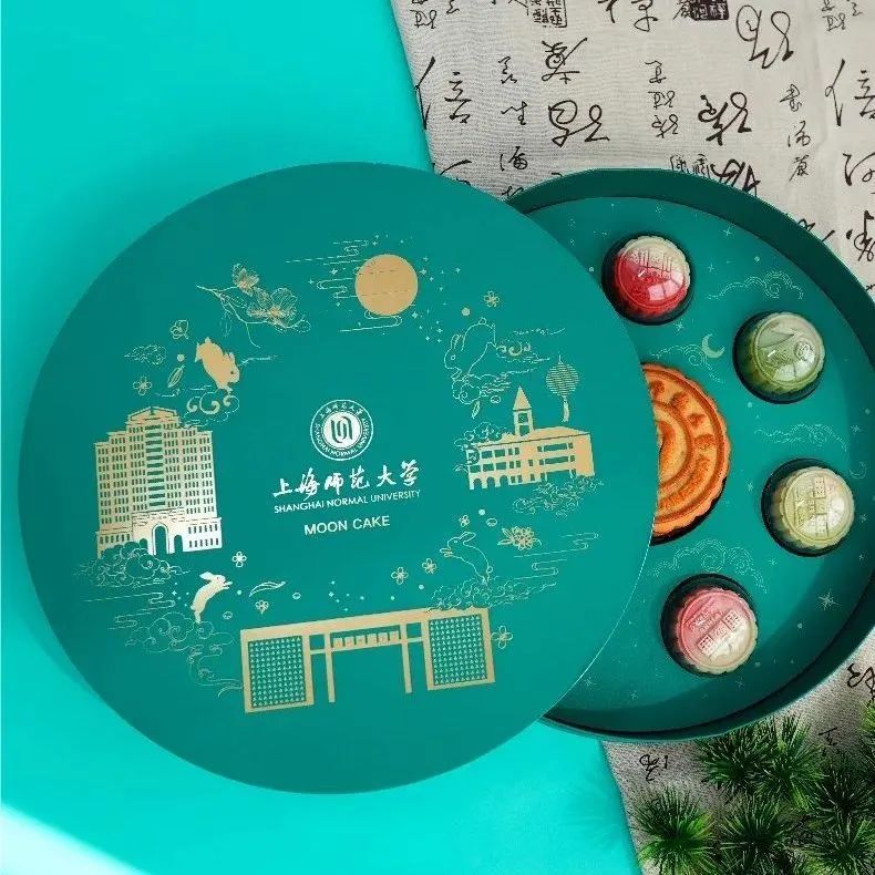 华东师范大学食堂今年中秋特制了一批华东师范大学专属流心月饼(奶黄流心、牛奶芝士、抹茶雪媚娘和榛子巧克力口味),为给中秋节坚守在校工作、学习的师生员工送去节日祝福。