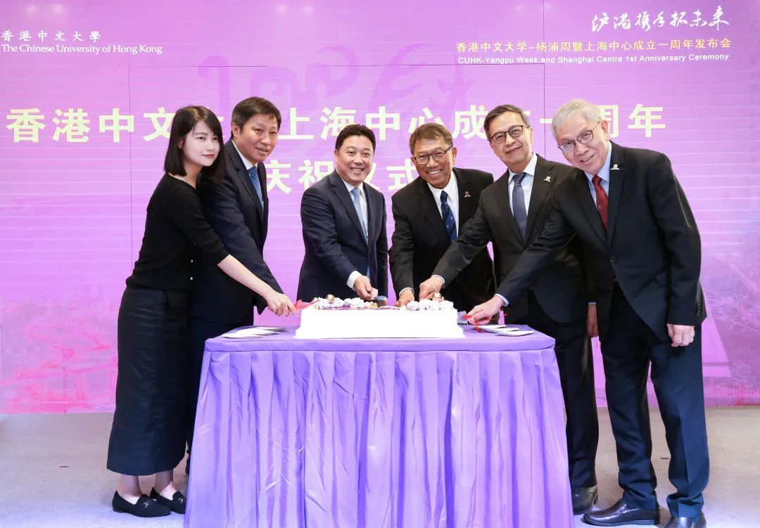 大家同切生日蛋糕,共祝香港中文大学上海中心一周岁生日快乐。