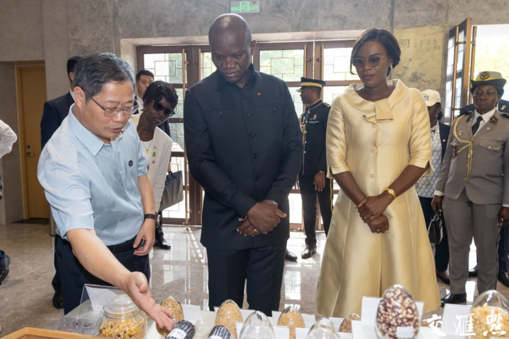江苏省农业科学院是恩圭马总统参访的第二站。在这里,总统与夫人顶着烈日走访水稻田、玉米地,详细了解农科院的农业科技创新。当了解到农科院的优质水稻品种和栽培技术已经在南非得到运用时,恩圭马立刻表示,希望加蓬也能与农科院迅速开展合作交流。
