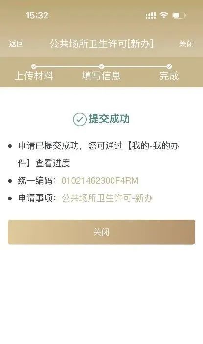 第五步:显示“提交成功”即为完成流程,可在“我的企业”-“我的办件”查看进度。