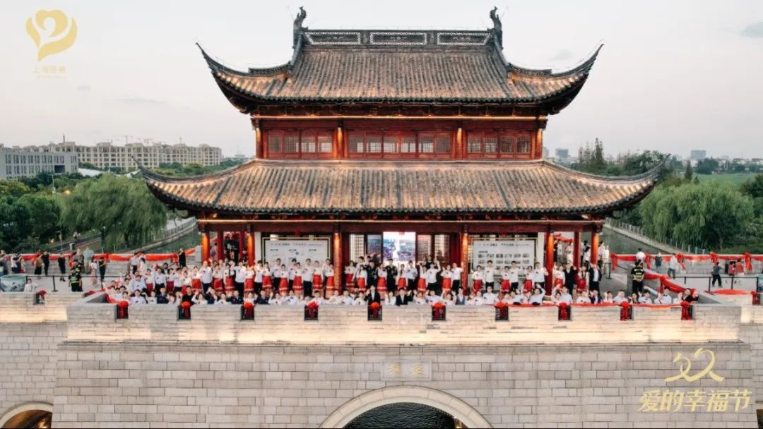 百位新人在兼具江南水乡古韵和现代新城气象的水城门下,一起诵读爱情宣言,共抒“江南四季是人生最美背景,长三角是青春激扬舞台”的时代情怀,满座宾朋共鉴“不离不弃、同心永结,孝长育幼、向上向善”的一生之诺。