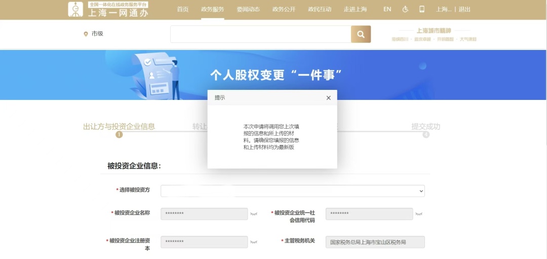 目前,一网通办个人股权变更“一件事”在税务部门查验环节新增了“补充材料”功能。您只需要登录一网通办企业专属网页,在办件列表中找到对应的事项并进入办件详情页,即可在申请流程中提交补正材料了。