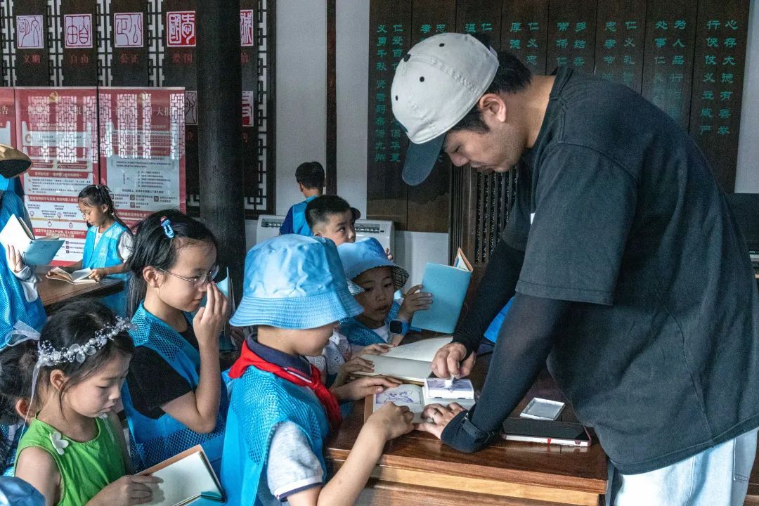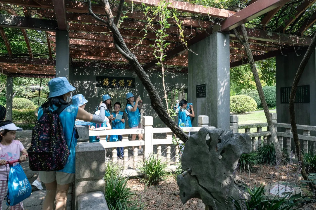 如今的古藤园,紫藤依旧铺陈于花架,疏影横斜,生机盎然;连同散见于园内的节孝坊、八棱石井栏等历史遗存,一起诉说着过往的悠悠岁月。“考古”队员们领取任务卡,完成收集6条历史线索的真实场景解密游戏,沉浸式探寻隐匿其中的人文掌故。