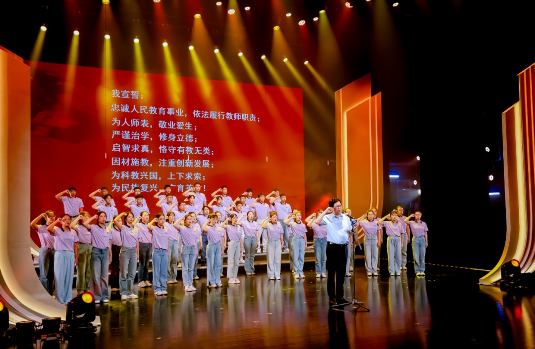 特级校长、奉贤中学校长林春辉带领新教师进行宣誓