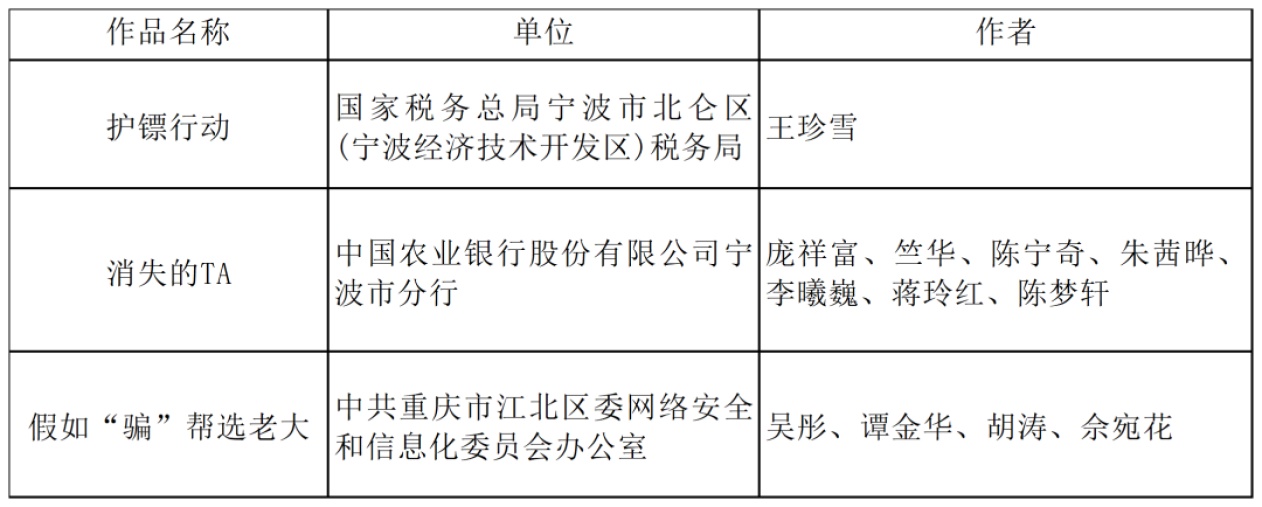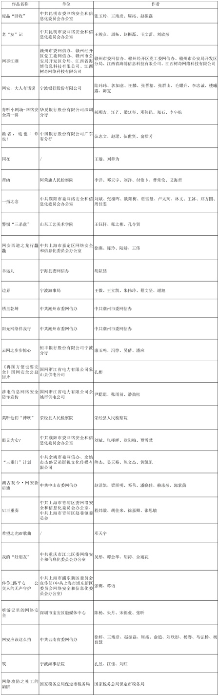 结合线上展播投票和线下专家评审,评选出了网络安全微视频一等奖1件、二等奖3件、三等奖6件,最具人气奖6件,最佳创意奖6件。