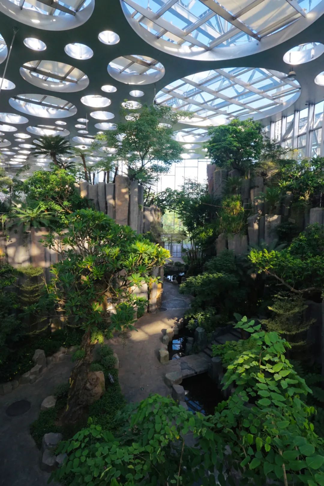 上海温室花园位于上海世博文化公园中心位置,紧邻中心湖,背靠双子山,占地约2.2万平方米,是集观赏游览、休闲娱乐为一体的多功能生态综合体。