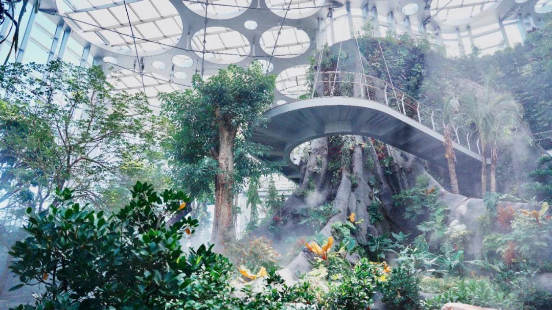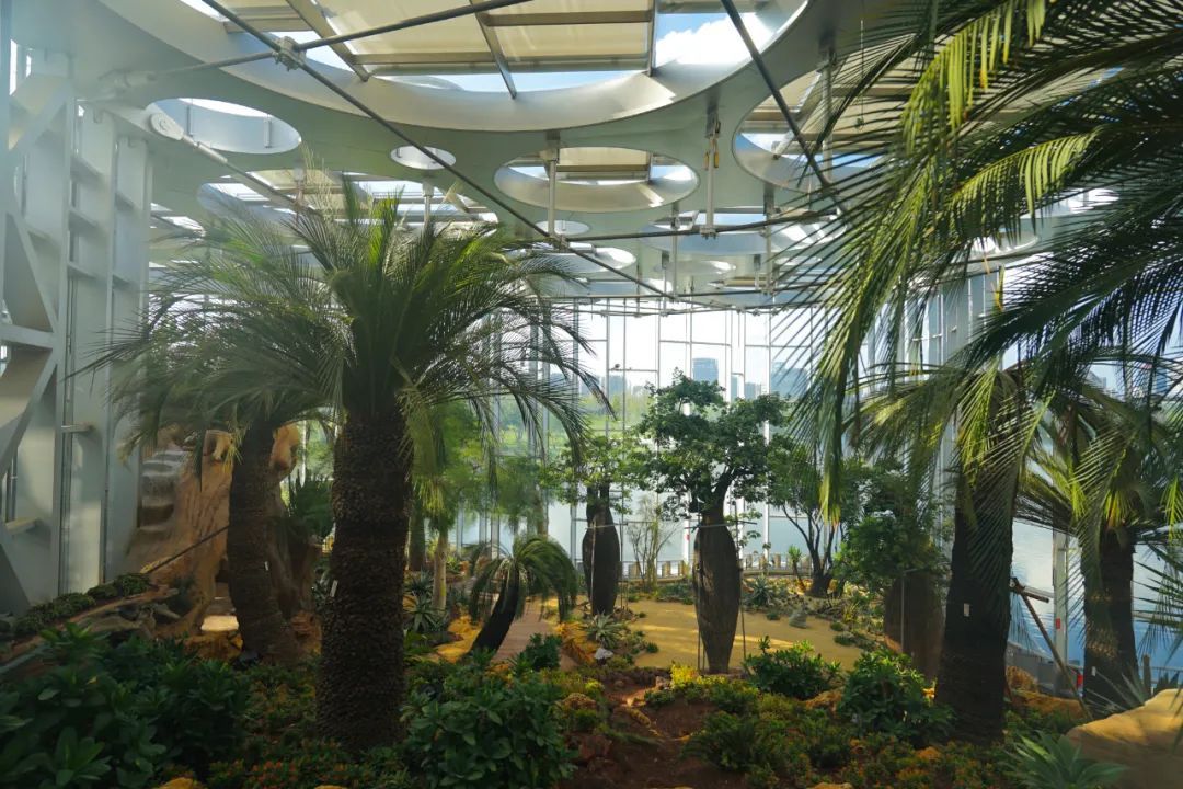 三大主题场馆是根据植物的生境进行分类设置,结合建筑的空间结构,择取世界生态系统中的典型生态片段,打造热带干旱、热带湿生耐荫、热带湿生喜阳三种环境类型,分别展示热带干旱植物、热带雨林植物与热带花卉植物。