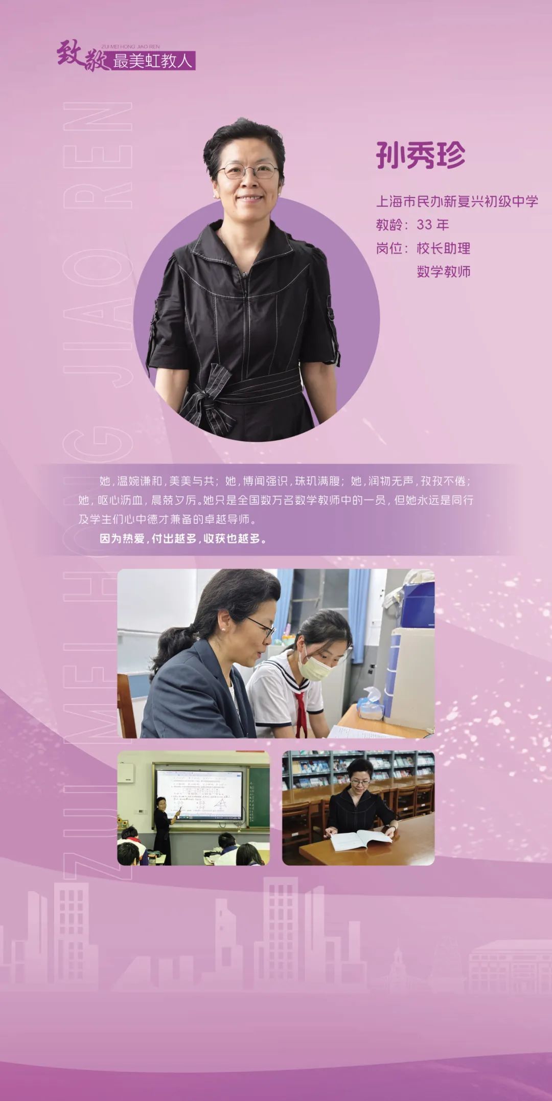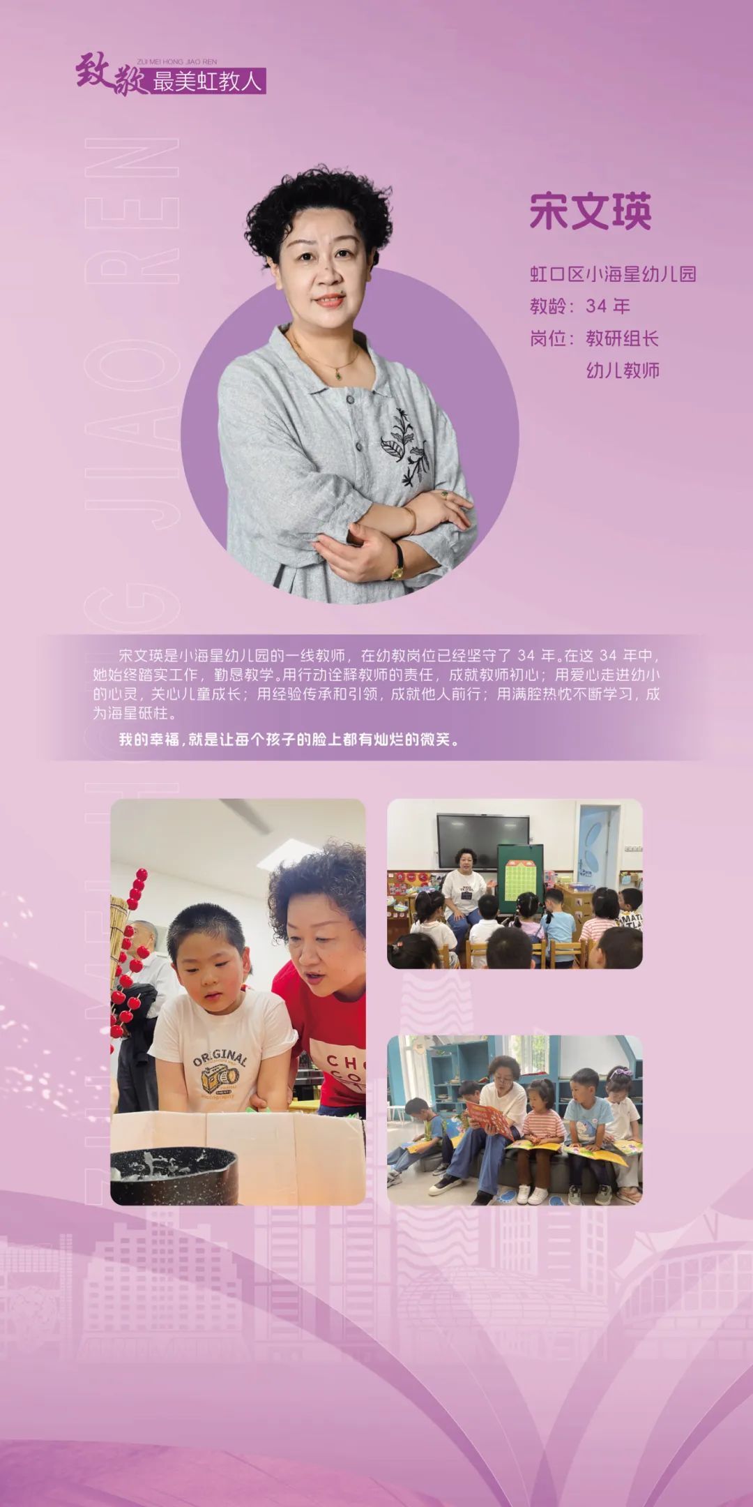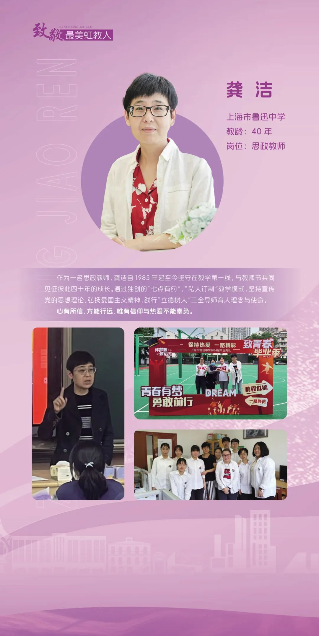 虹口区教育局表示,将继续大力弘扬教育家精神,通过选树身边典范,展示新时代虹口教育高素质专业化教师队伍建设的突出成就和广大教师立德树人、自信自强的精神风貌,团结凝聚广大教师以更加奋发有为的精神状态投身教育强区建设。