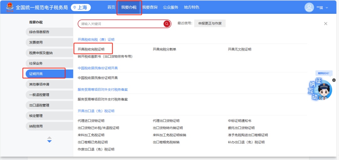 新电子税局办理路径:我要办税-【证明开具】-【开具税收完税证明】。