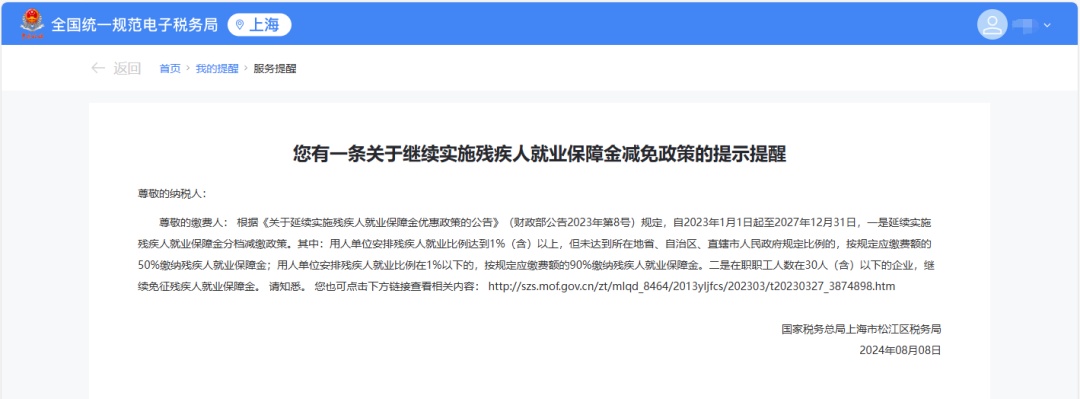 2024年上海残疾人就业保障金(以下简称残保金)已于8月9日开始申报缴费,前期,申税小微为大家送上了操作攻略→【关注】今起本市2024年残疾人就业保障金开始申报缴费,操作攻略请查收!