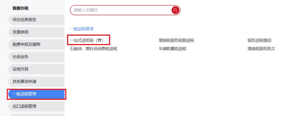 新电子税局办理路径:我要办税-【一般退税管理】-【一站式退抵税(费)】。