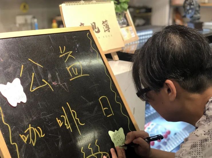 “只要写下一句正能量的话,就可以换一杯咖啡,这活动可有意义了!”邵爷爷一边说一边深情地写下“温暖咖啡,爱心传递,让世界变得更美好!”