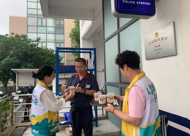 “快进来喝杯咖啡,凉快一下!”下午两点左右,一位快递小哥正巧经过真如党群服务中心的门口,在“秋老虎”的威力之下,身上的衣衫早已被汗水浸湿,工作人员邀请他到中心稍作休息、喝杯凉饮缓解疲劳。