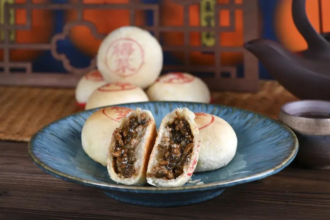 梅干菜鲜肉月饼、糟香榨菜鲜肉月饼、
