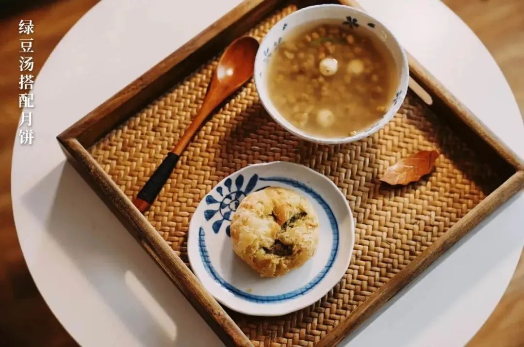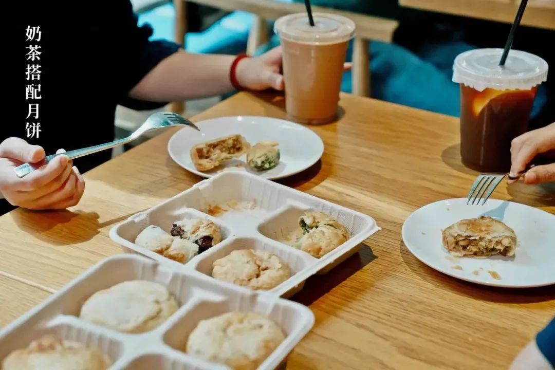 在上海的部分门店中,龙华素斋也推出了月饼的N种吃法,比如早餐有月饼配豆浆/豆腐花、月饼配咖啡的不同选择,下午茶推出了月饼配奶茶/酸奶,还有可以解暑气的月饼配绿豆汤的搭配吃法。