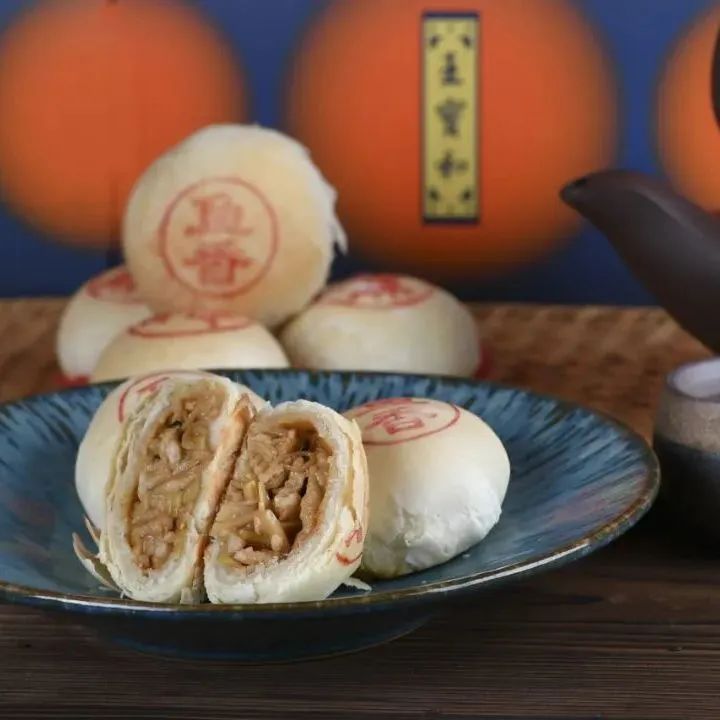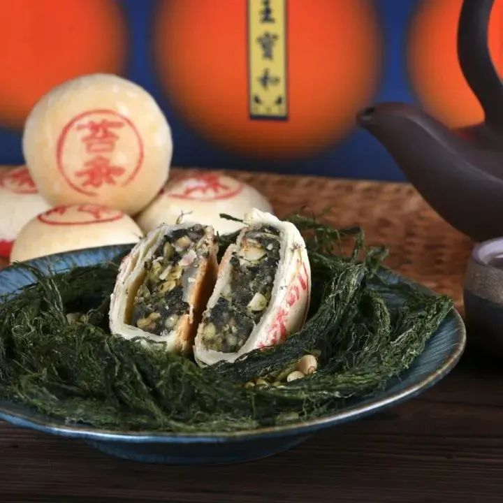 梅干菜鲜肉月饼、糟香榨菜鲜肉月饼、鱼香肉丝月饼、黑洋酥核桃仁月饼、苔条松仁月饼是王宝和今年全新推出的口味,款款都是上海味道。
