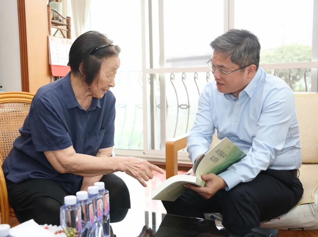 在于漪老师家中,薛侃与她促膝长谈,共同回顾了于漪老师在杨浦躬耕基础教育70余载,以身垂范、润物无声的光辉历程。薛侃表示,于漪老师是广大教育工作者认真学习的楷模,希望于漪老师在保重身体的前提下,发挥“传帮带”作用,让于漪教育教学思想在更广阔的领域得到传承和发扬。杨浦将继续加大对教育事业的投入,深化于漪教育教学思想研究中心建设,将其打造成为新时代杨浦教师培养的高地,激励广大教育工作者以更加奋发有为的精神状态投身人民城市教育强区的建设实践中,努力办好人民满意的教育。薛侃再三叮嘱相关部门要做好老教师的服务保障工作,大力弘扬尊师重教的社会风尚,让老教师在晚年能够享受到应有的尊重和关怀。