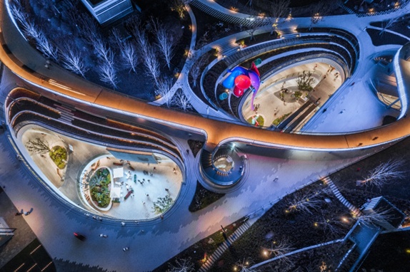 与此同时,与公共空间一体设计的苏河湾万象天地项目,主动应对苏河湾滨水地区土地资源紧缺、公共空间不足、历史风貌保护难等难题,打造了自然生态与商业服务、历史文脉与现代生活融合的立体多层交互的城市空间,塑造静安新地标,树立城市更新新典范。