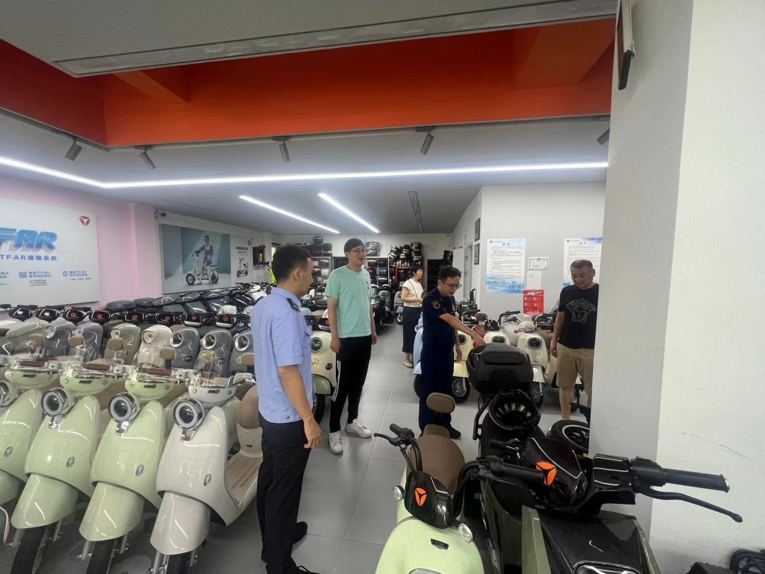 在电动自行车销售场所,检查组重点对电动自行车的外形、蓄电池电压值等是否一致,是否存在改造、拆改限速等违法违规行为等开展检查。同时向电动自行车经营商户讲解电动自行车销售进货及销售的注意事项,明确电动自行车相关新国标,强调违法违规行为的处罚结果,呼吁电动自行车经营者认真学习、坚决不违法违规。