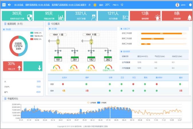 举措五 打造后勤能源智慧监管平台,建设基于互联网+信息流、大数据+业务流的智慧后勤管理平台,实现随时随地可运维,随时随地有服务,随时随地用数据,实现科学地摸家底、管运行、降能耗、保安全。污水管控从源头抓起,完成了污水流量计在线联网及备案工作及余氯在线监测联网备案工作。对污水加药系统进行了更新,实现了自动加药功能确保消毒工作有效稳定运行。把好“源头”关、把好监管关,狠抓质量、体现实效。