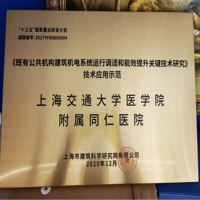 在近五年中,上海市同仁医院在节能领域收获颇丰,包括上海市“十三五”节能先进集体、中国现代医院管理典型案例、上海市节约型公共机构示范单位、“十三五”国家重点研发计划子项目《既有公共机构建筑几点系统运行调适和能效提升和关键技术研究技术应用示范》等荣誉。