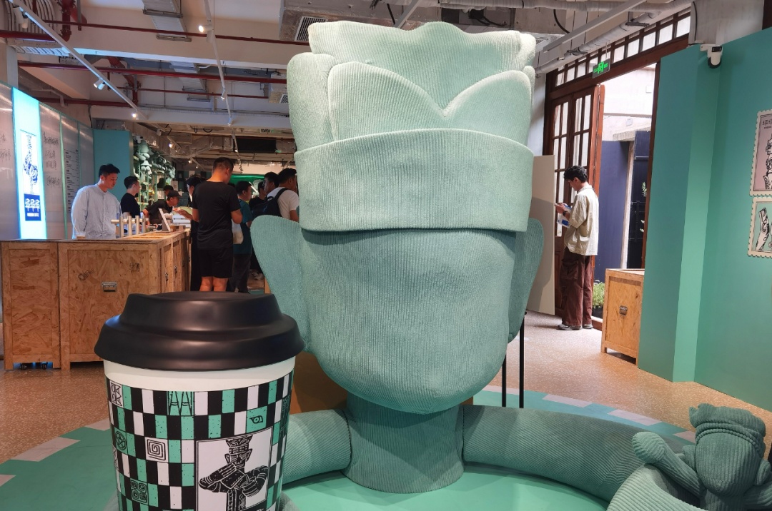 率先亮相的堆堆堆咖啡快闪店,位于张园W8,是一间以“大立人来了”为核心IP的咖啡+文创快闪店,也是三星堆博物馆的馆藏咖啡品牌首次出“堆”。走进店内,一个巨型Q版大立人让不少市民瞬间挪不动脚步,争相与他“同框”留影。