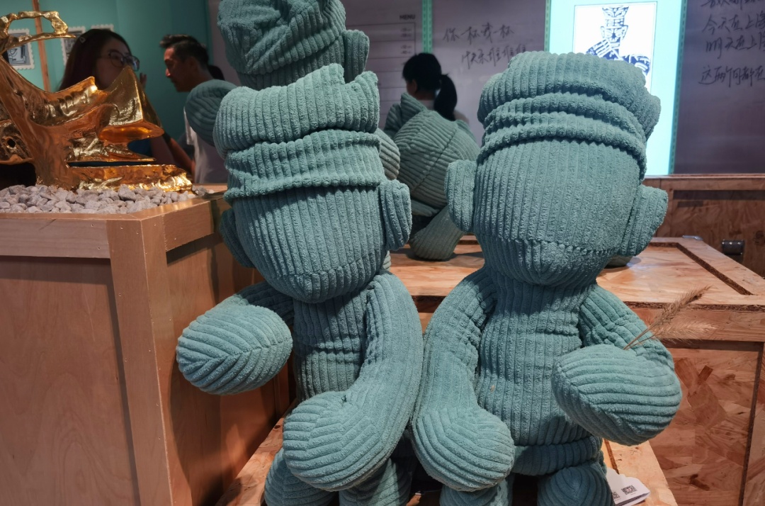 “我们把海派文化和古蜀文明做了一个融合,希望能够对青铜大立人形象进行一个年轻化的尝试。抱偶的头冠、圆形的手,还有细长的身形和裙摆,都是根据大立人的原型进行设计的。在颜色上,也挑选了一款比较接近文物本身,又带有一点时尚感的绿色。”SMG融媒体中心活动主管刘骁吉介绍说,本次嘉年华活动后,这些新开发的上海限定文创产品将会在三星堆博物馆“上架”。