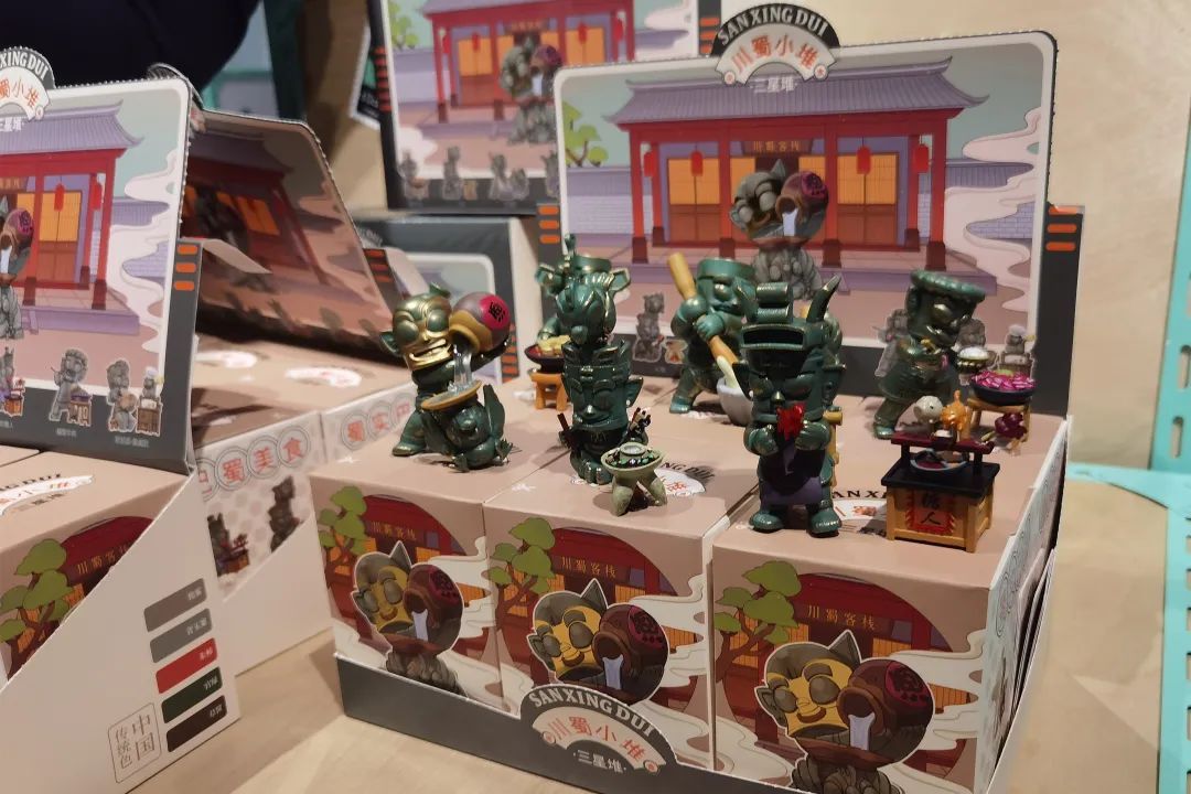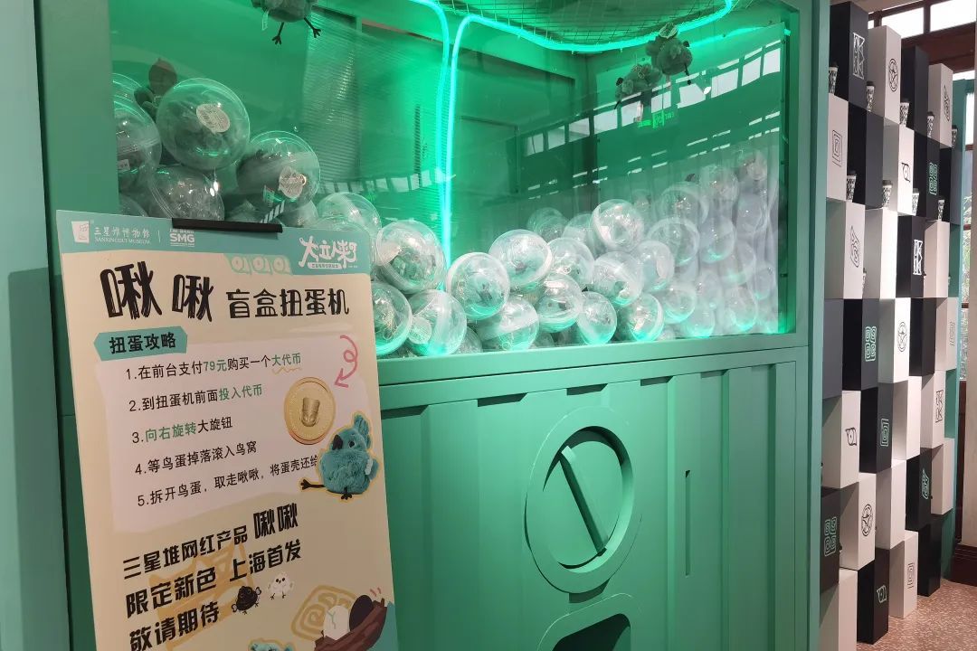 除了全新的“大立人来了”系列文创产品,根据青铜纵目面具、青铜猪鼻龙等设计的多款三星堆博物馆爆款文创产品也一同亮相。三星堆博物馆一度卖断货,以青铜神树上立鸟为原型的青铜啾也以盲盒扭蛋的形式限时发售。刘骁吉介绍说,9月25日后,还将在店内“上新”首发黑色和白色两款上海限定新色的青铜啾。