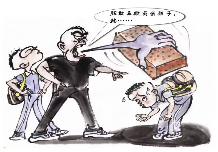 孩子遭同学欺负,父母想为孩子讨一个公道和说法,心情可以理解,但处理手段必须合理合法,切勿私自用刑。可第一时间向学校和老师报告,或者直接报警解决。通过恐吓甚至殴打等以暴制暴的方法来处理校园霸凌,不但无益于问题解决,相反还会激化矛盾,如果对他人造成人身伤害,还可能触犯刑法,被追究刑事责任。
