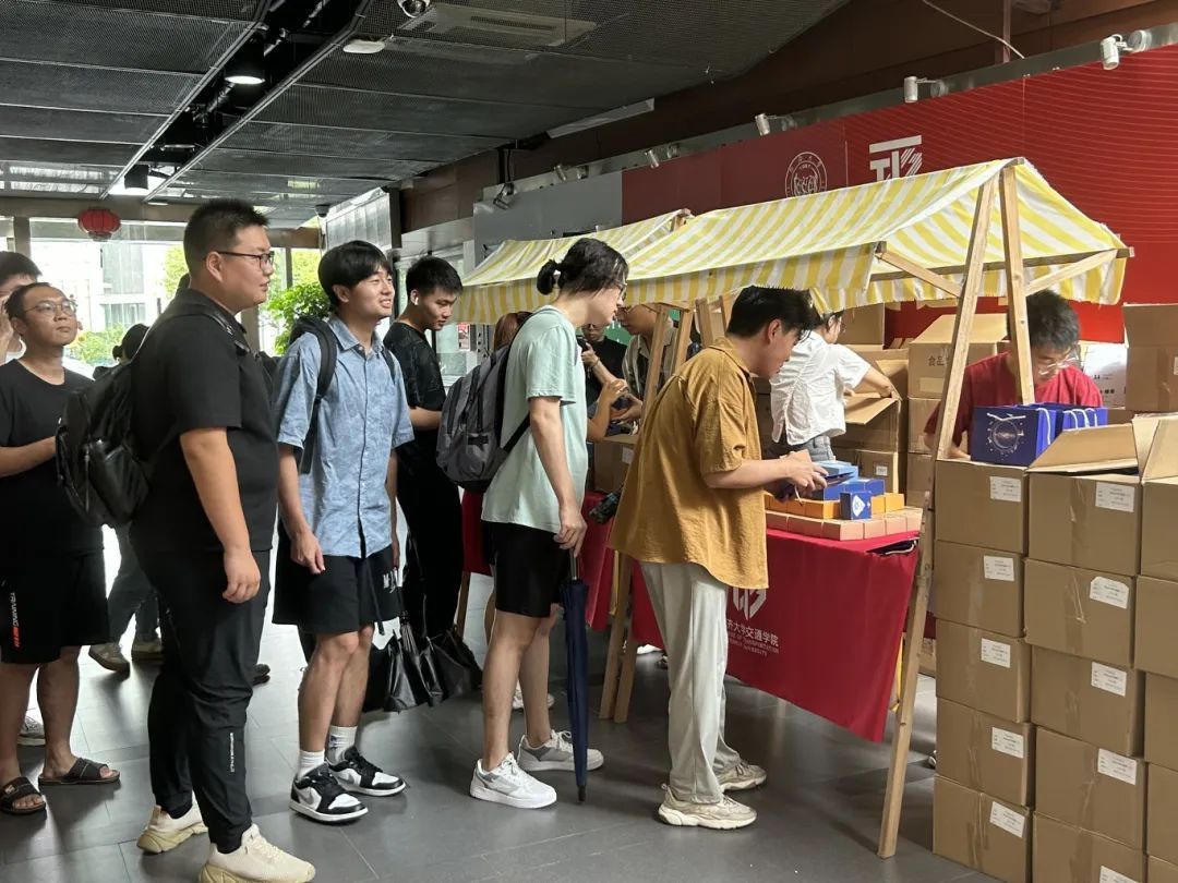 9月11日上午10点,在同济大学嘉定校区交通运输工程学院底楼大厅,前来领取月饼的学生已经排起长队。今年每名同学有两枚月饼,奇亚籽酸奶草莓、桂花芋泥、海盐芝士3种口味随机出现在礼品袋中,让大家体验拆中秋