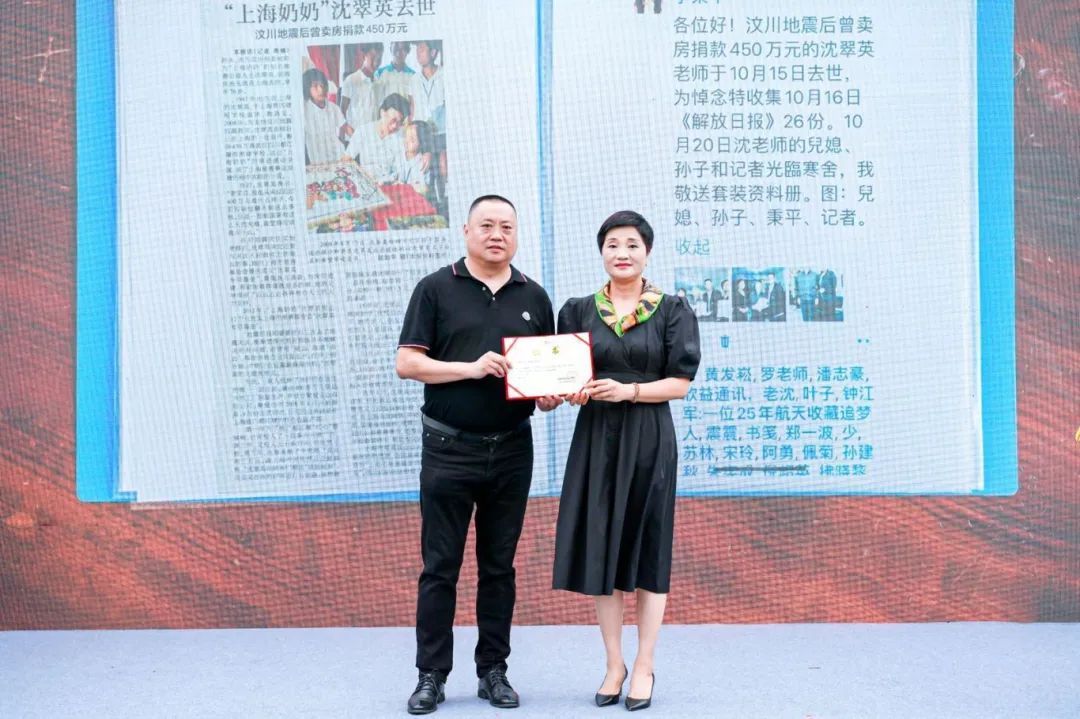 当天,沈翠英家属将“上海奶奶”生前挚爱的钢琴、日常穿戴的服饰及新闻简报集锦等珍贵物品捐赠于上海福寿园人文社会馆收藏。