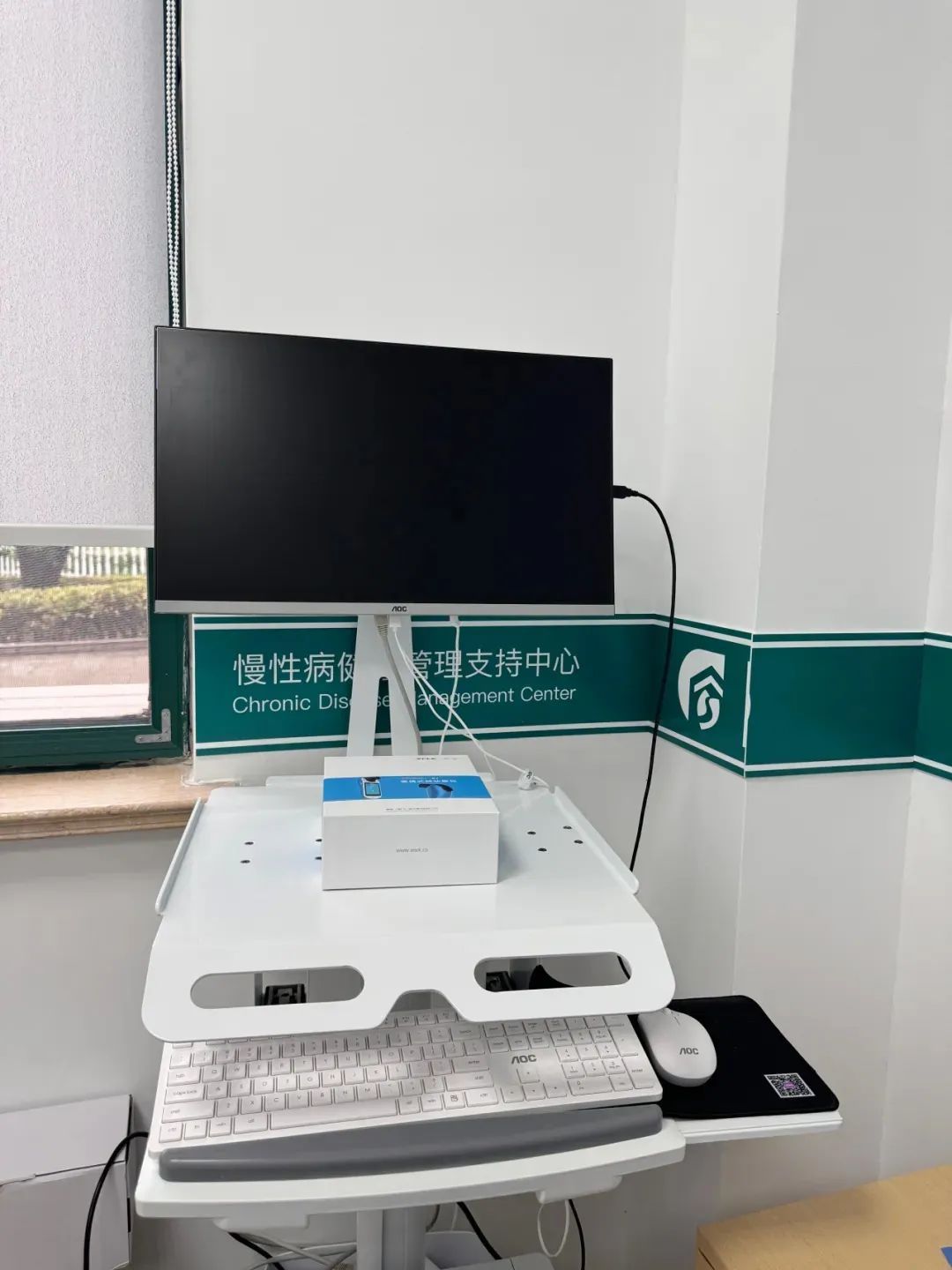 为优化居民先测量后就医的流程,慢病支持中心与全科诊室和家庭医生工作室融为一体。慢病支持中心设在门诊一楼,环境整洁、温馨,内设置等候、引导、测量、评估等区域。配备标准化便携式肺功能仪、标准化测糖设备、标准化测压设备、标准化身高体重等仪器。