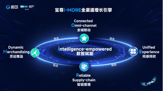 宝尊近期重磅推出全渠道增长引擎i-MORE。分别代表intelligence-empowered(数智赋能)、Dynamic Merchandising(灵动策品)、Connected Omni-channel(全域联动)、Reliable Supply-chain(智链管理)和Unified Experience(同感同权)五大能力支柱,助力品牌实现全渠道数字化转型,致力于成为品牌数字化零售技术方案最佳合作伙伴。