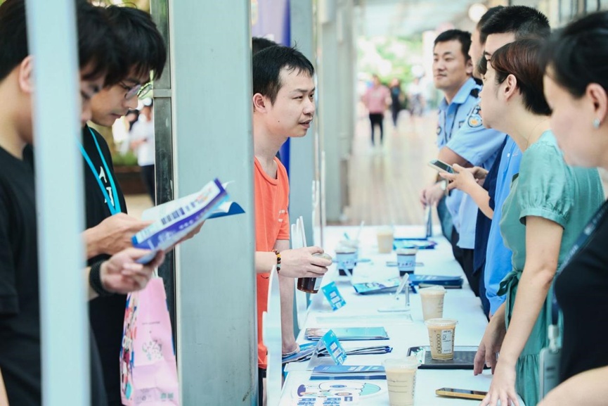 活动以“快闪咖啡店”的形式,趣味性融入网络安全科普,吸引了附近办公楼里众多职工和市民参与。据工作人员介绍,活动所在的陆家嘴金融城以金融企业职工和办公室白领为主,金融反诈意识的提升尤为重要。