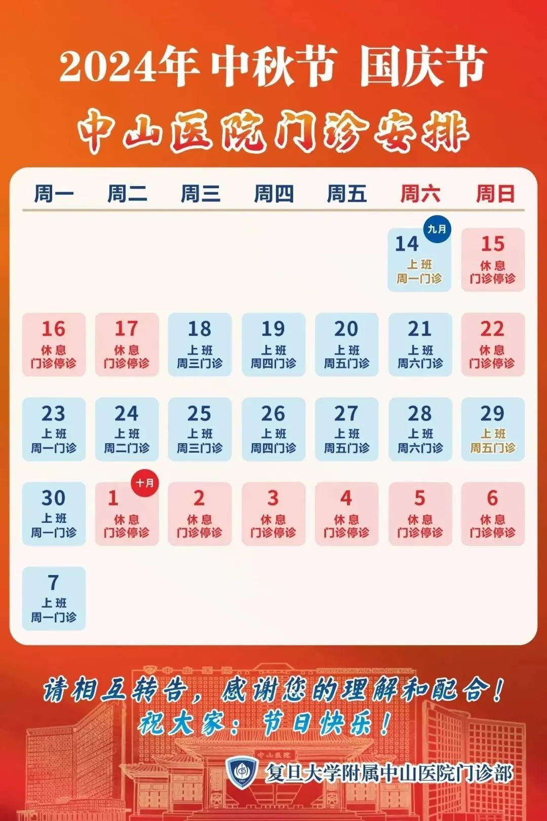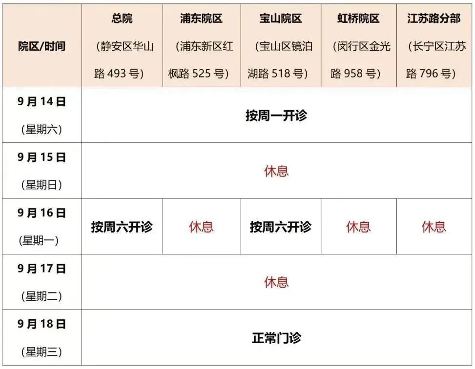 “中秋”假期门急诊安排一览
