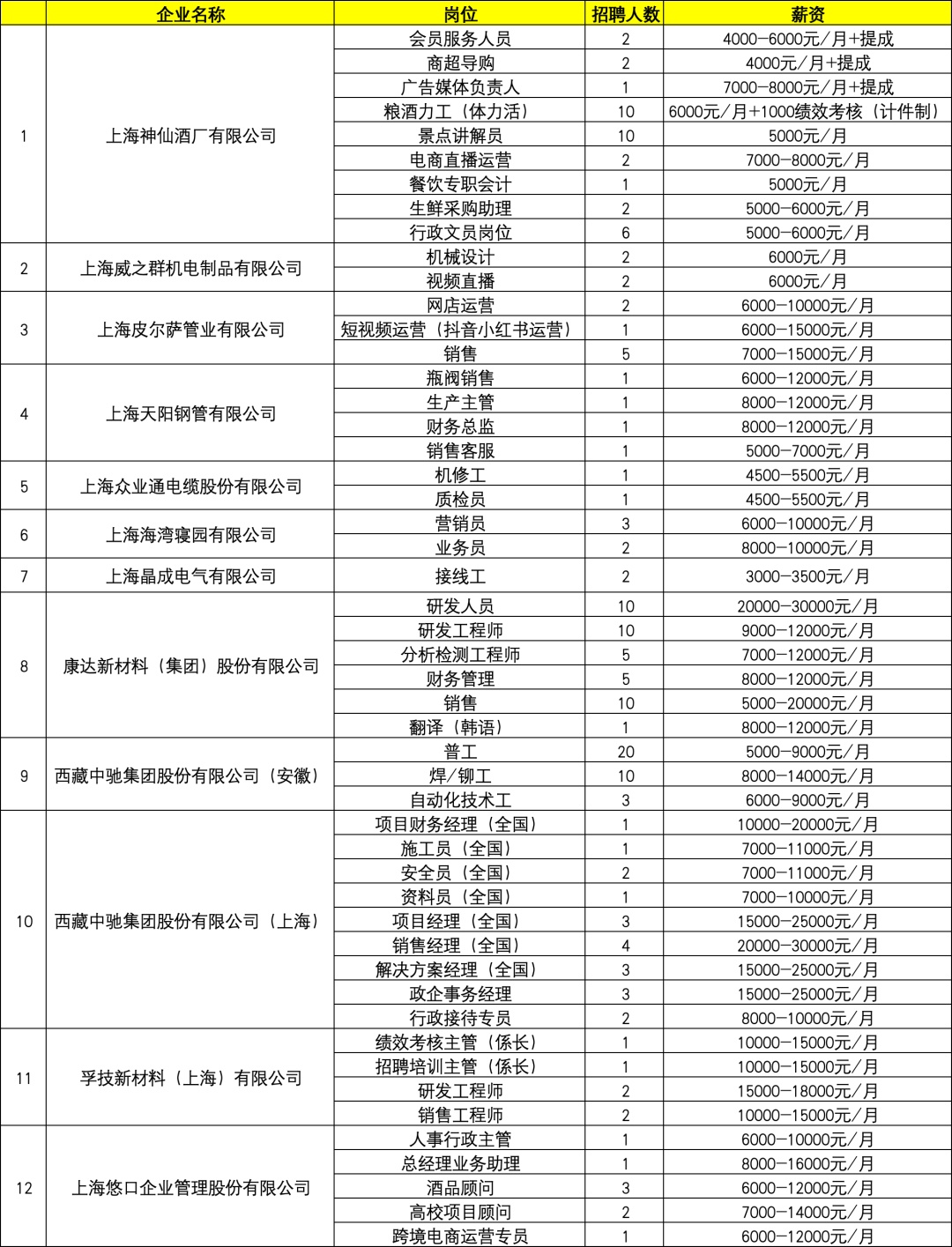 精选12家企业50个岗位招169人