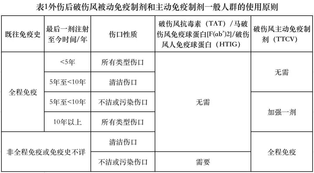 这需要结合伤口性质与既往免疫史来综合判断,一般人群的使用原则见下表。