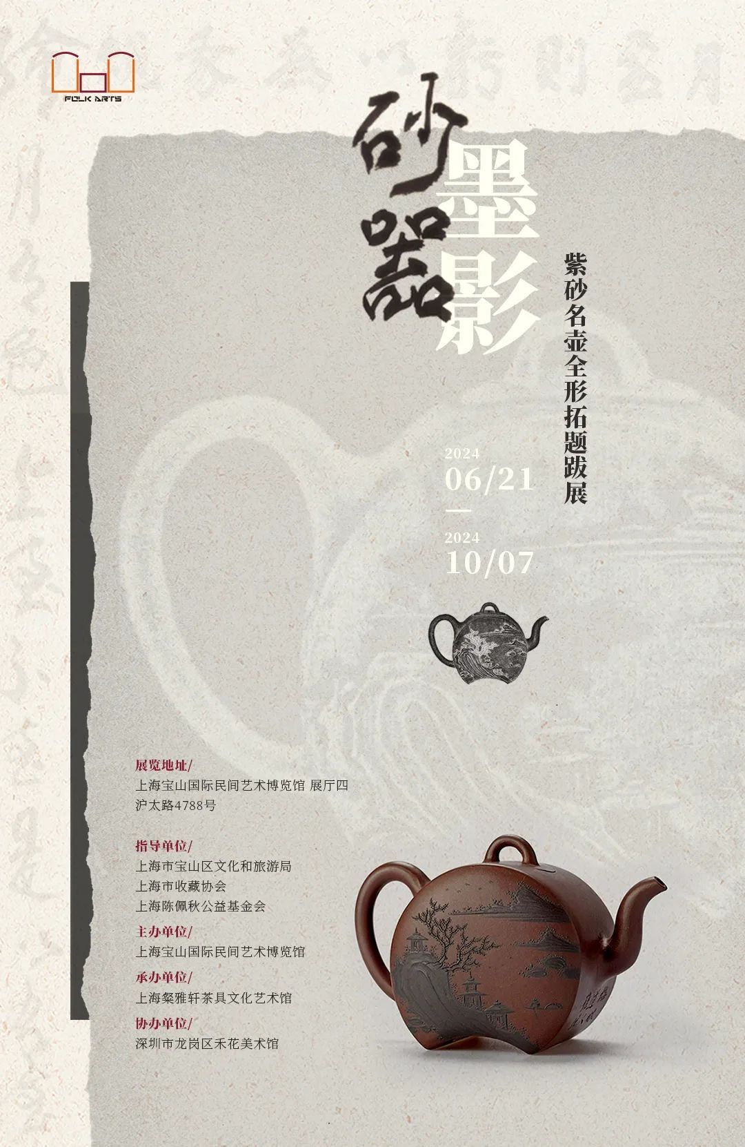 观赏《砂器墨影——紫砂名壶全形拓题跋展》,领略大师们的独特匠心,品味紫砂器、印、文三者交相辉映的多维视觉语言,近距离感受中华美学的韵味,体会传统文化的内涵。