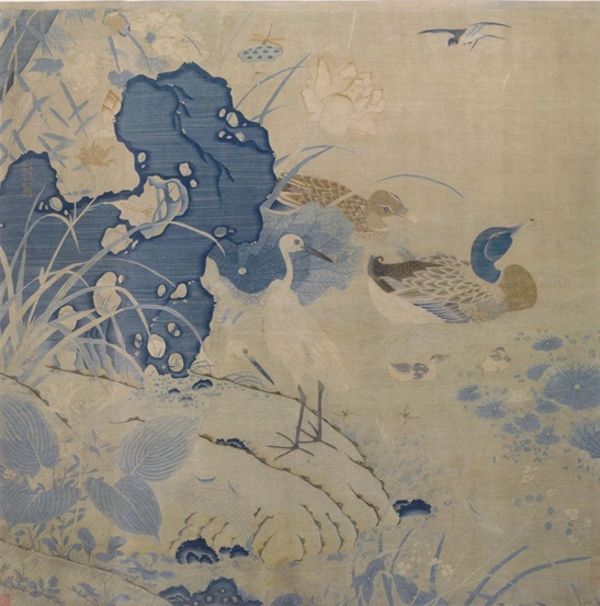 朱克柔《缂丝莲塘乳鸭图》