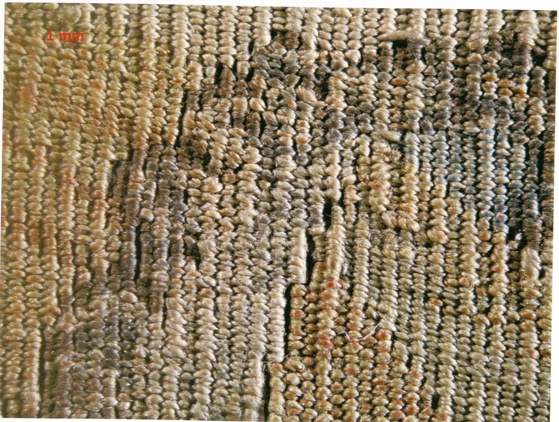 在纬线起花过程中,需要在经线处一支一支,穿上穿下,每次穿过后需要用指甲或小梳子扯紧纬线。如果纬线间不能平行,就会出现缂丝呈波浪状。北宋年间的缂丝,可能技术不到位,就会出现这样的情况。
