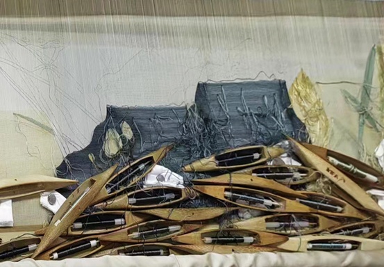 缂丝纬地起花 (每支竹梭代表了一个色彩)
