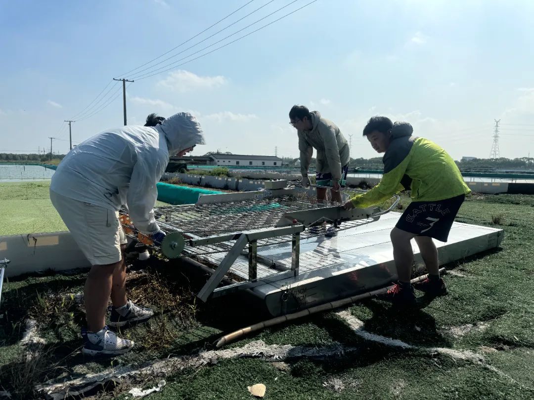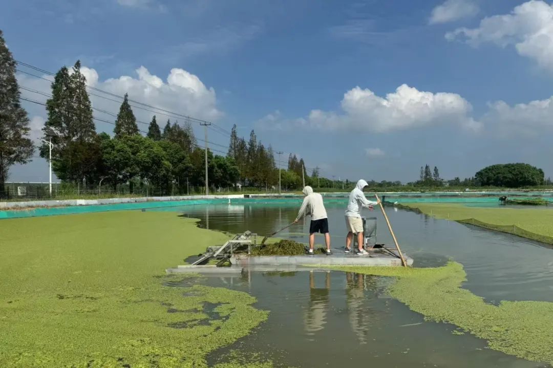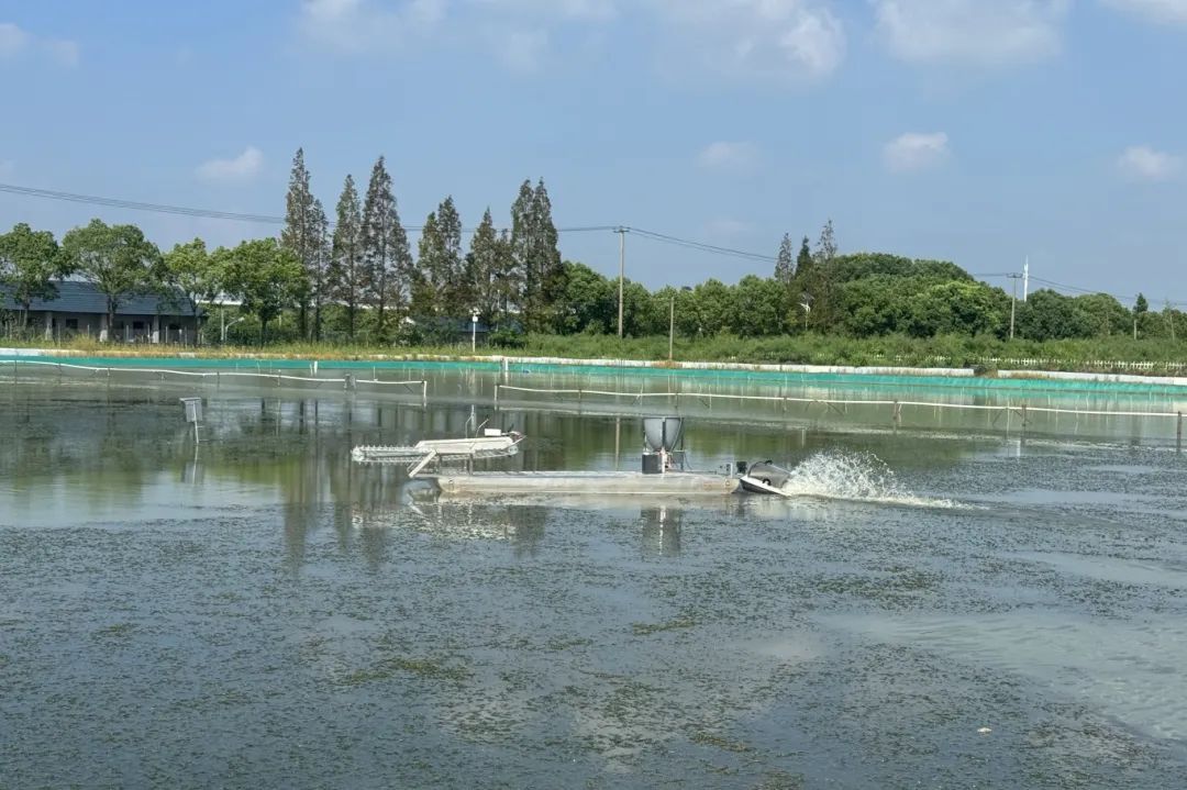 位于练塘镇徐练村的上海睿婕水产养殖专业合作社是中华绒螯蟹“江海21”良种生产单位,建有蟹种培育和高标准示范养殖基地550亩。在上海海洋大学、上海市水产研究所等科研单位技术支撑下,养殖场从“水、种、草、饵”四大要素入手,推广使用机械化、智能化渔业设备,开启了螃蟹智慧养殖新模式,实现提质增效。“河蟹是上海重要的水产养殖生物之一,人工劳动比较繁重,针对这个情况,我们研制了一个多功能浮动平台,集成投放饵料、水草清理、浮萍清理等多项功能,相较于平常的人工劳动,该浮动平台可以提升300%效率,仅需一位工作人员的操作,即可完成全塘的工作。”上海海洋大学工程学院研究生蓝天傲说。