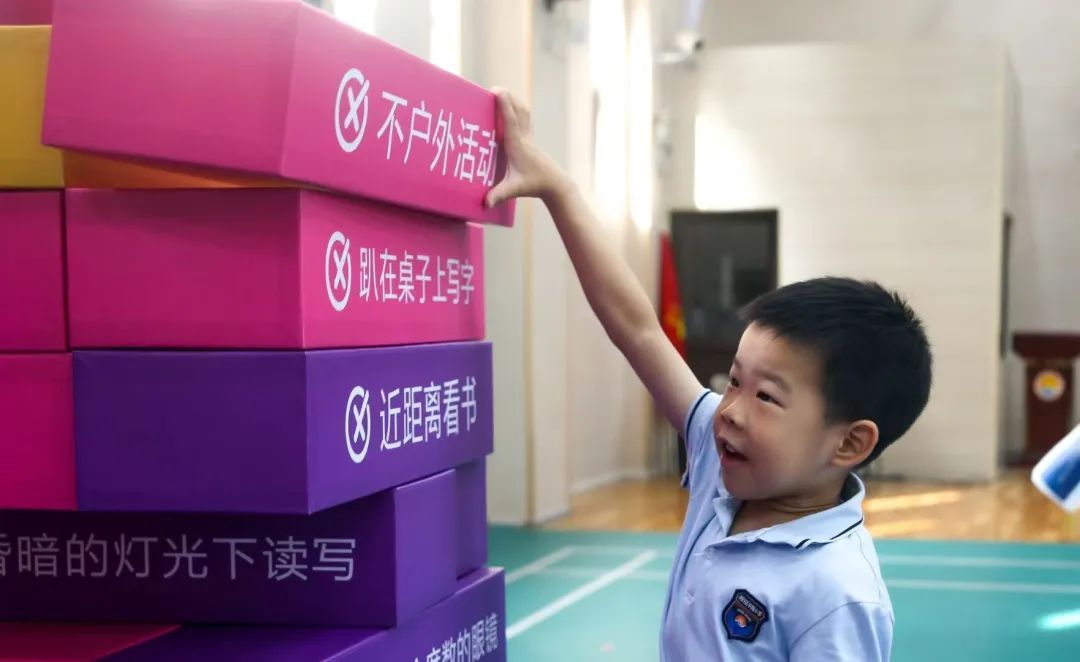 活动还从全国综合防控儿童青少年近视宣讲团发布的《2024年暑假多场景近视防控二十问答》中精选10句核心知识点,制作成盲盒笔和便签本发放给活动学校儿童青少年,让孩子们在日常学习生活中对近视防控观念入脑入心。据了解,近年来区教育局联合区卫健委、区疾控持续推进“闵行健康光明”三大行动——“健康档案光明行”健康环境光明行”“健康校园光明行”。落实全区26万学生的全学段全覆盖视力检测,对视力出现异常的学生出具个人视力健康保健“处方”,及时干预、跟踪指导。安排专项资金保障灯光改造,完成中小学所有教学点灯光改造,并开展中小学“可升降课桌椅调整”专项行动。此外,每年度开展近视防控行动,“爱眼几何——近视防控光明专列进校园”就是今年的主题活动。下一步,闵行将持续创新科普宣教方式,扩大线下活动覆盖面,构建青少年儿童“主动健康”发展体系,持续探索推进中国式现代化的健康校园实践。