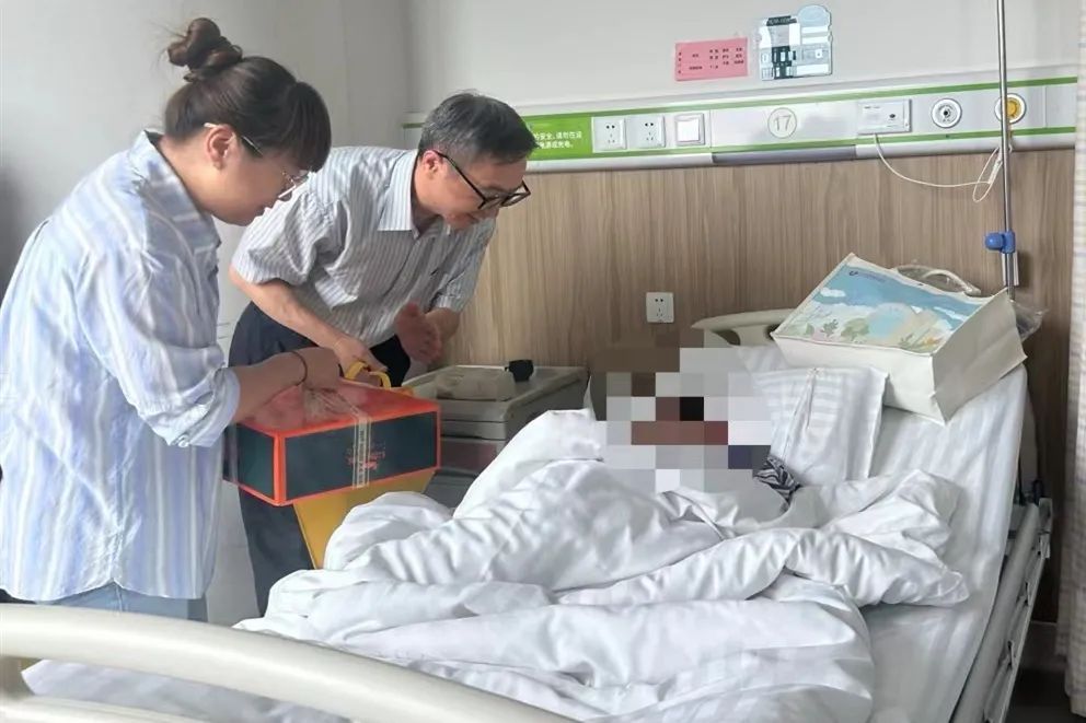 现场,上海市慈善基金会嘉定区代表处和爱心企业慰问这些给西藏患儿,给他们送来月饼、水果等礼包,鼓励他们好好听医嘱,放心接受治疗。