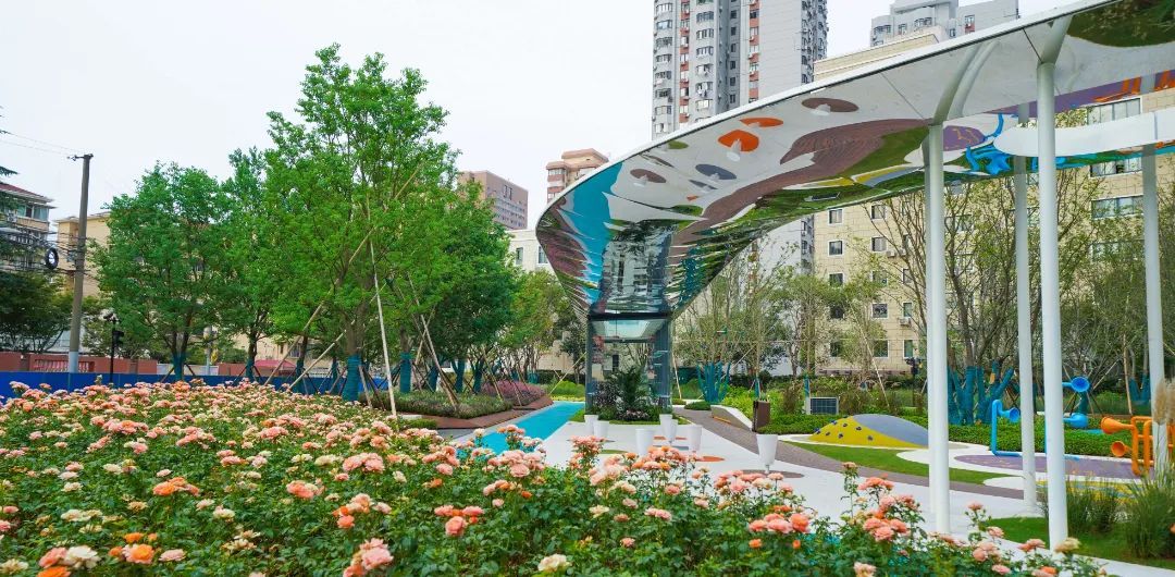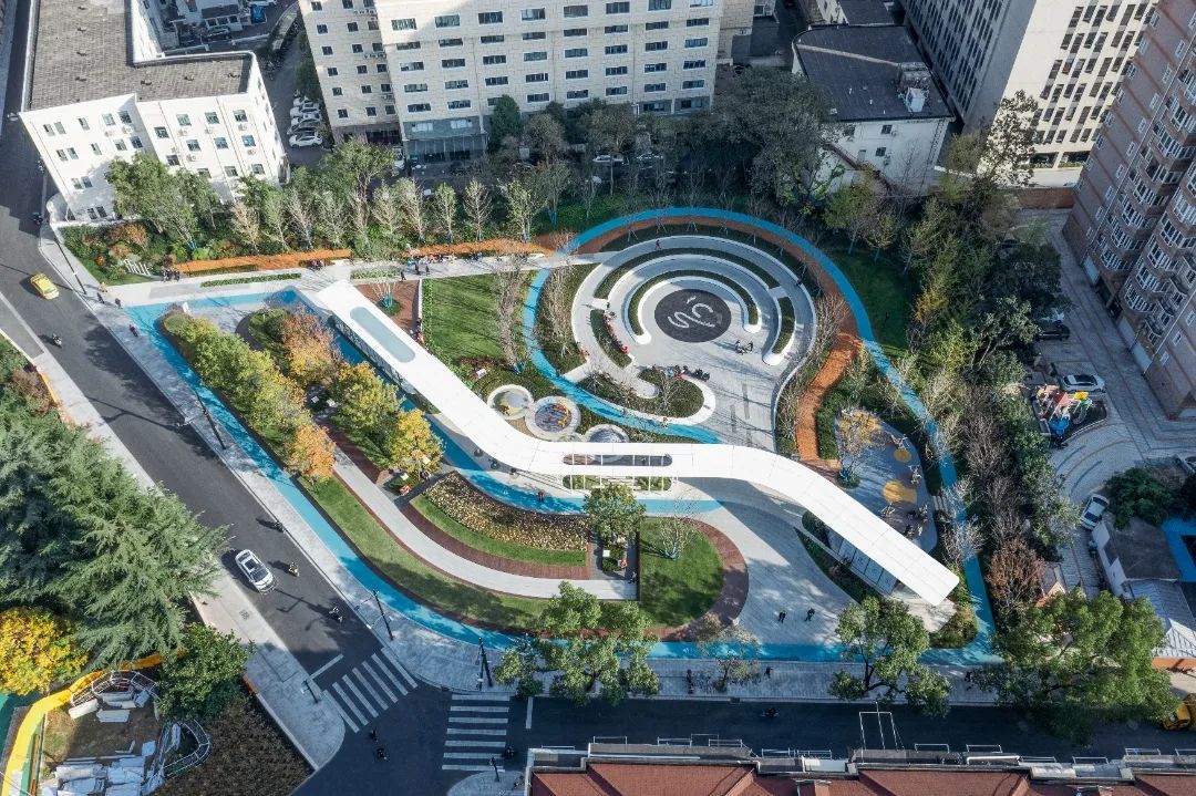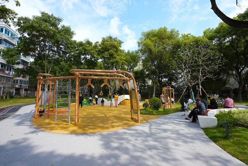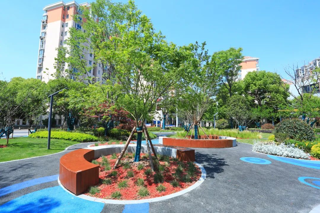 乐山花园位于乐山路33号,面积5598平方米。改造围绕“乐”字主题,打造“四时景观”,为居民提供可全时段游憩、全年龄共享、全空间造景的开放式口袋公园。